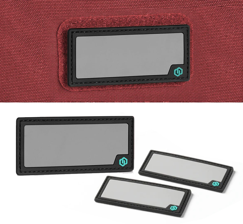 Je uzpůsobena na přichycení k různým taškám, kufrům a oděvům prostřednictvím suchého zipu.